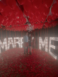 Lo que Valeria no sabía es qué René había preparado todo para en ese momento preguntar la pregunta del millón. Llegaron al “departamento del amigo de René” cuando en eso le cubren los ojos a Valeria y caminan unos segundos hasta el lugar en donde, junto con letras luminosas, globos y rosas se arrodilló y le pidió a Valeria el honor de ser su compañera de vida para toda la vida.